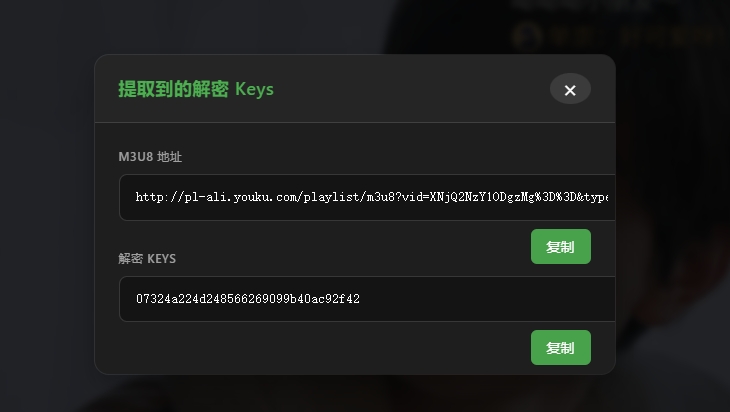 即可提取M3u8地址和Key,复制到下载器中即可下载